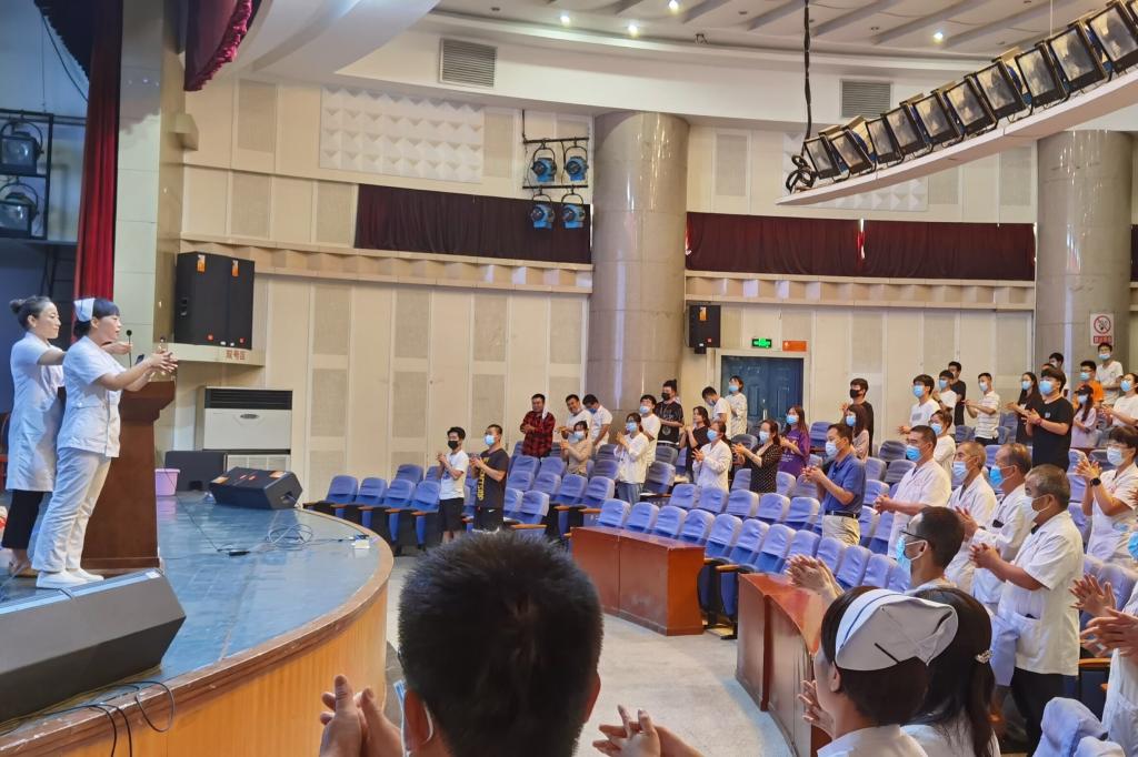 6月28日附属医院联合渭南市二院医护团队对校团委的大学生志愿者和音乐学院、化学与材料学院130余名学生开展了疫情防控知识和应急救护技能培训活动。培训活动由附属医院王新英副主任医师主持,渭南市二院医护团队的医务人员为同学们上了一堂生动的应急救护课。