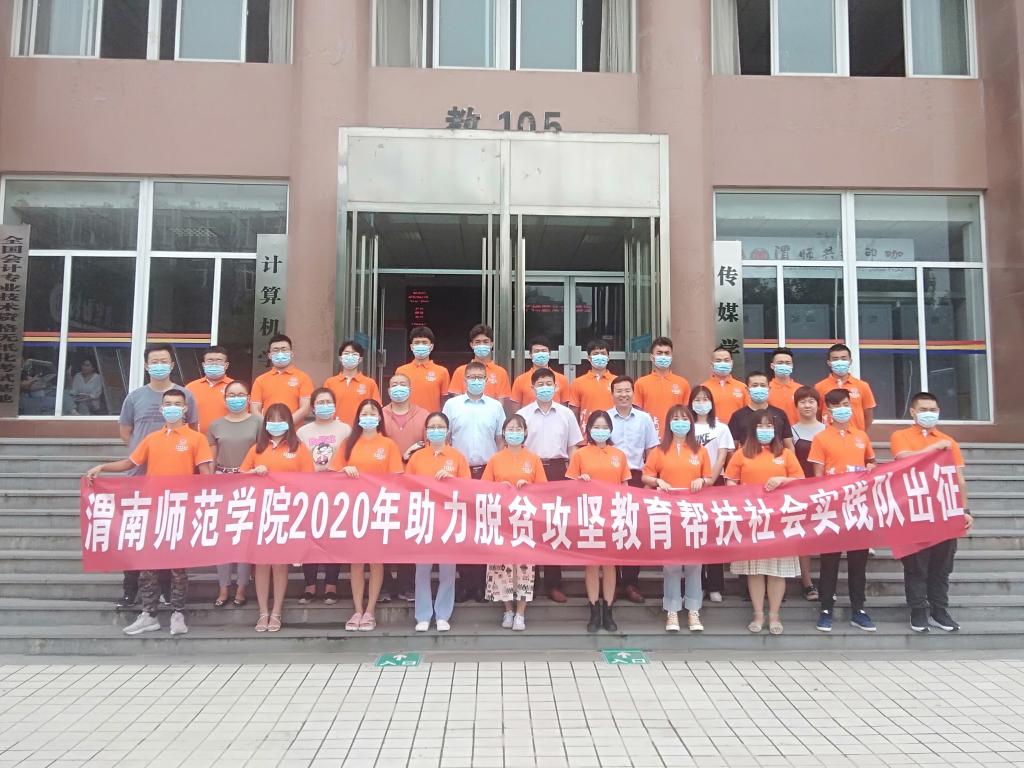 在出征仪式上校团委副书记肖飞宣读《伟德国际1949官网2020年暑期社会实践“万名学子扶千村”脱贫攻坚专项活动的通知》对今年“万名学子扶千村”专项社会活动的组队、实践内容、活动要求做具体安排。人文学院汉语言专业182班李兆恒同学代表实践队员作表态发言,他从对“扶学扶志”快乐课堂的认识,参加活动的意义和青年的责任担当等方面表达了同学们参与志愿帮扶活动的决心。党委副书记任健对同学们参与志愿帮扶活动表示感谢。他强调,支教是脱贫攻坚很重要的一支队伍,伟德官网社会实践活动多次被团中央、团省委给予肯定和表彰。他对参与此次脱贫攻坚专项社会实践活动的同学提出三点希望:一是同学们在服务地要用心、用情、创新、创意把扶贫工作做得有声有色,要做详细、扎实、丰富的计划,用专业知识帮扶学生,用努力在白水留下印记。二是团结、互助、克服困难,提高分析和解决问题的能力,面对困难不要抱怨、不能回避,共同寻找解决问题的办法。三是树立安全思想,把安全放在首位,常态防疫,小组上课,不聚集,服从安排,统一行动,校团委为大家做好保障工作。
