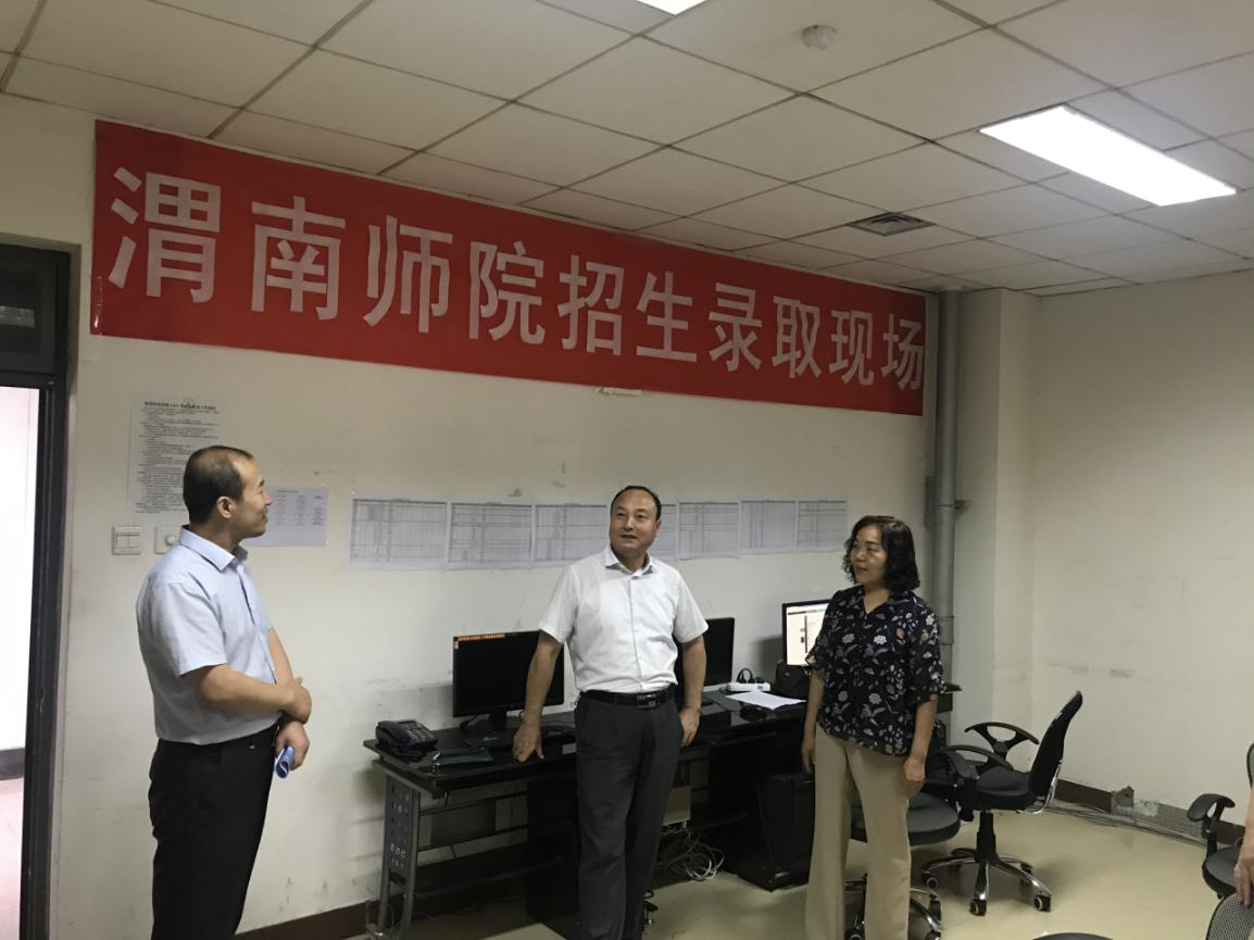 8月11日上午,校长赵曼在副校长王菊霞等陪同下来到学校招生录取工作现场,看望慰问招生工作人员,了解招生录取工作进展情况,检查指导招生录取工作。