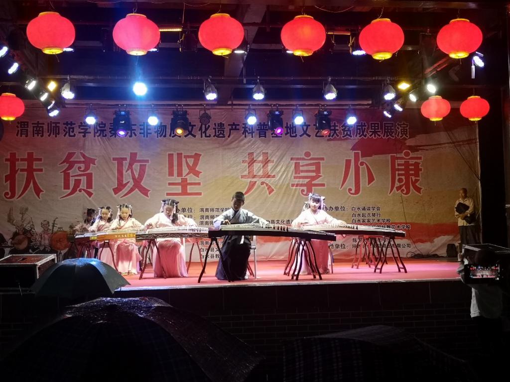 8月14日,由伟德官网主办的“脱贫攻坚 共享小康”秦东非物质文化遗产科普基地文艺扶贫成果展演在白水县顺利举行。