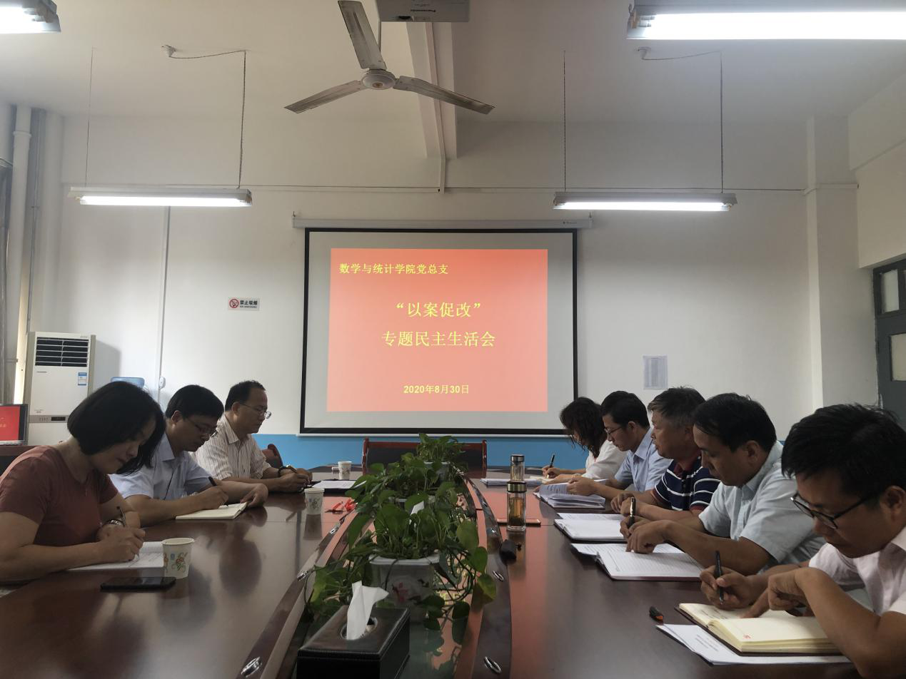 8月30日上午,数学与统计学院党总支在学院会议室召开赵正永严重违纪违法案以案促改专题民主生活会。校党委委员、副校长常青林,第二督导组李望、宋威到会指导。学院全体领导班子成员参加。会议由党总支书记张同琦主持。