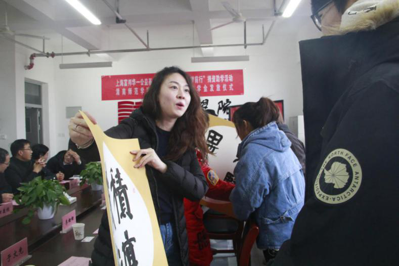 随后,伟德官网学生工作部部长陈景西与简晓鹏作为双方代表签订助学金捐赠协议。国际合作与交流处处长杜百顺代表学校向爱心企业进行授牌。美术学院受助学生向来宾赠送了个人书法习作,表达了受助的感激之情。美术学院受助学生代表赵钰涵表示,日后将更加刻苦学习,积极参与实践,全面提升个人能力与综合素质,成为德智体美劳全面发展的社会主义合格建设者和可靠接班人。