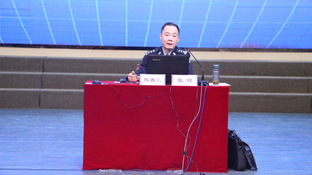 本次报告会,伟德官网联合渭南市公安部门,邀请西安市公安局反恐支队一级警长、公安部西北研究所特聘研究员、西安市反恐怖主义教官张健,为师生作题为《提升国家安全意识 严防“三股势力”渗透破坏》的专题报告。