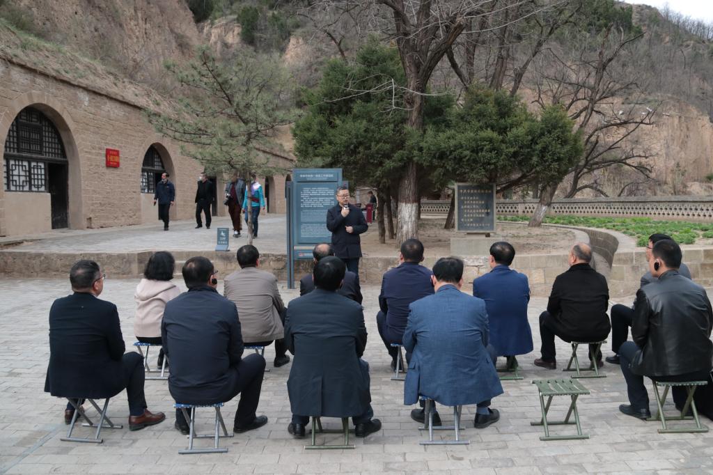 在杨家岭中共中央统战部旧址,延安大学张文生副教授为全体党委委员作了《毛泽东与黄炎培纵论历史周期率》现场教学。张文生从毛主席与爱国民主人士黄炎培关于“历史周期率”的著名谈话“窑洞对”为切入点,回顾了毛泽东与黄炎培关于“兴勃亡忽”历史周期率的著名对话,从历史与现实的角度,全面解读了毛泽东与黄炎培对话中所蕴含的时代背景、丰富内涵和时代价值,并结合中国抗疫所取得的胜利,阐明了社会主义制度的优越性。随后,学校党委委员集体在杨家岭七大会址,回顾了在毛泽东思想指引下夺取抗日战争最后胜利和新民主主义革命在全国胜利的光辉历程。