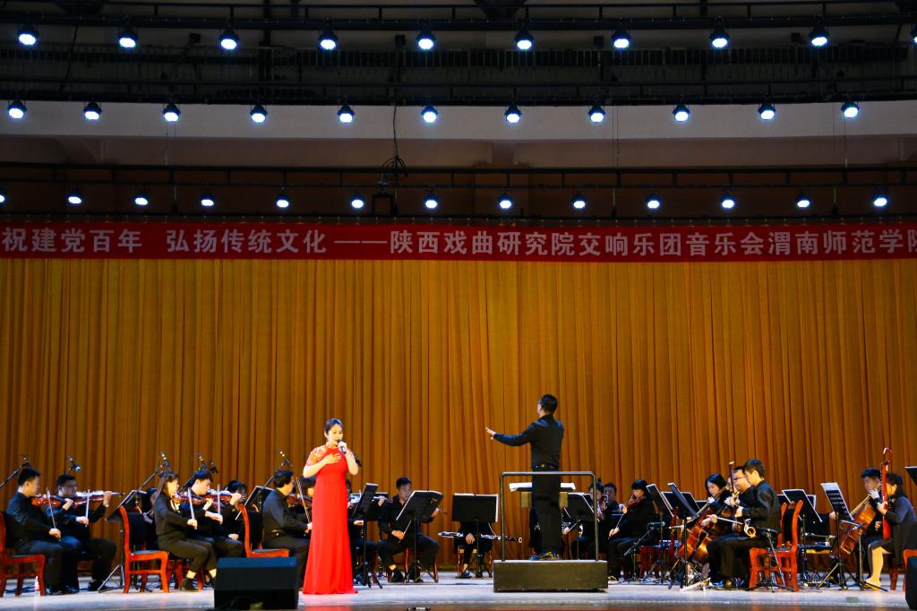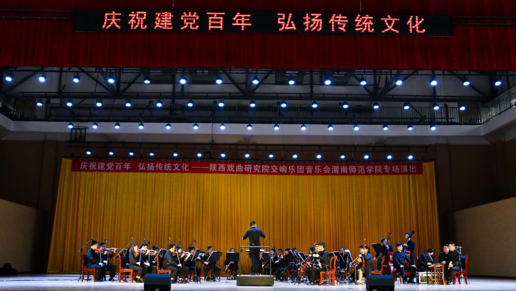 为庆祝党的百年华诞,大力弘扬优秀传统文化,4月27日下午,陕西戏曲研究院交响乐团音乐会伟德国际1949官网专场演出在学校富平校区举办。党委副书记任健出席并观看演出,学工部、富平校区管委会、后勤服务中心、美术学院、传媒学院等相关部门负责人及师生代表共300余人现场观看聆听。