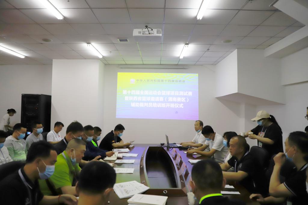 5月20日上午,第十四届全国运动会篮球项目测试赛暨陕西省篮球邀请赛(渭南赛区)辅助裁判培训班在伟德国际1949官网云帆体育馆举行。来自陕西省内各技术官员与裁判员共40余人参加了培训。