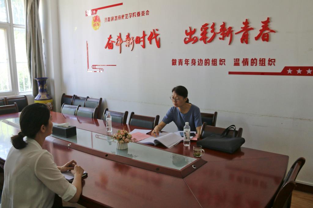 座谈会后,郝鹏涛和陈梅分两组对伟德官网团建示范创建主要负责同志,专职团干部代表和学生代表进行访谈。同时,对团建示范创建工作支撑材料进行查阅。专家组与伟德官网团学干部就共青团工作思想政治引领、服务学生成长成才、基层团组织建设及特色做法等进行了深入交流,详细了解工作开展情况,并考察参观了校团委、校学生会等团学工作阵地,实地感受伟德官网各级团学组织工作的良好精神风貌。