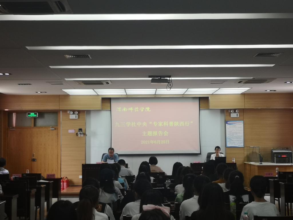 6月25日,学校在逸夫楼科学大讲堂举办九三学社中央“专家科普陕西行”主题报告会。报告会由统战部副部长杨利民主持。