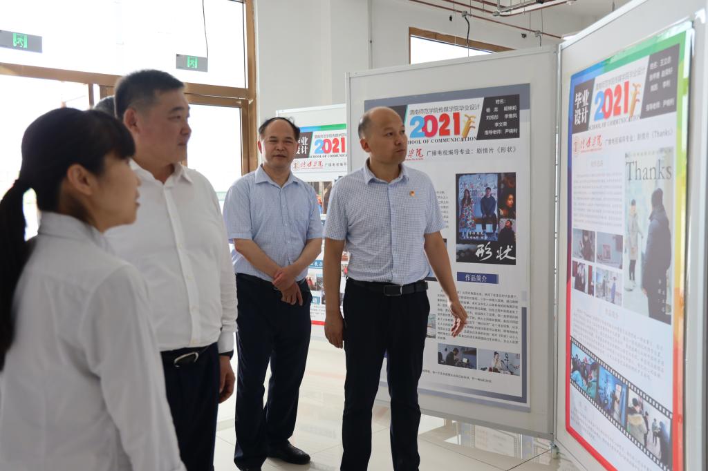 参观过程中,学校领导对本次展览工作及师生高质量作品给予以了充分肯定,对传媒学院把党建思想、党史学习、课程思政融入专业作品创作的模式,给予了高度评价。