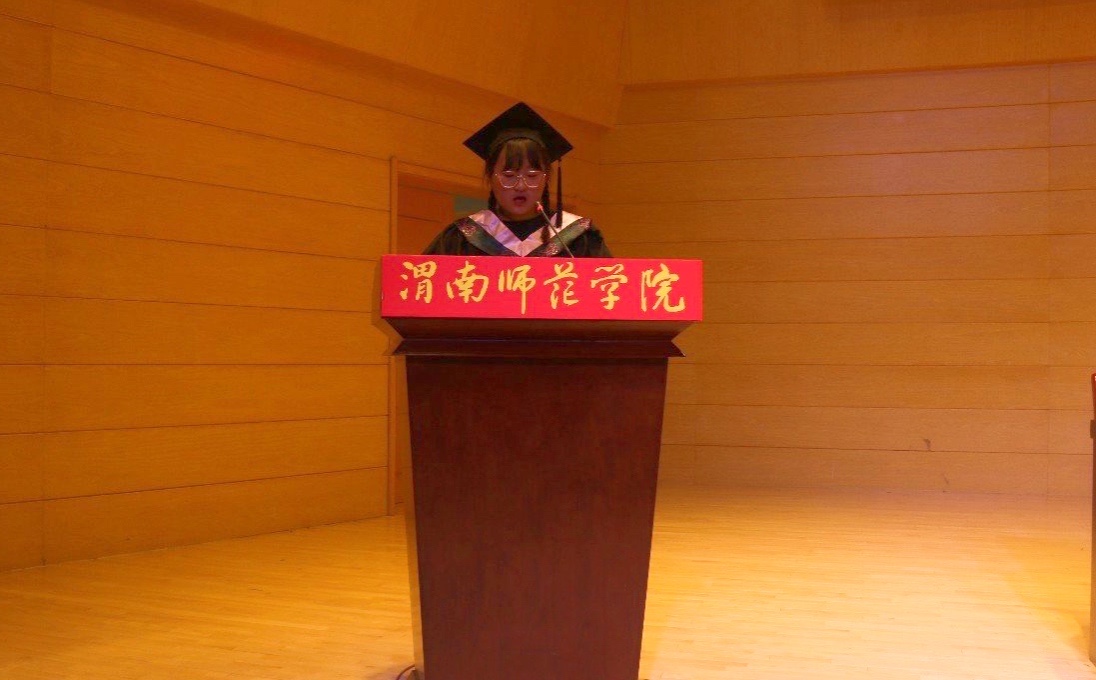 毕业生代表严琪琪向辛勤培育自己的母校表达了真挚的感谢及不舍,她表示,自己定不会辜负学校的期望,做一名优秀渭师人。在校生代表袁子涵祝愿2021届毕业生前程似锦,表示自己会以优秀毕业生为榜样,不懈奋斗。