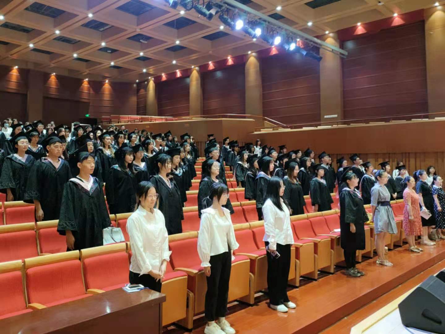毕业典礼暨学位授予仪式在庄严的国歌中拉开序幕。