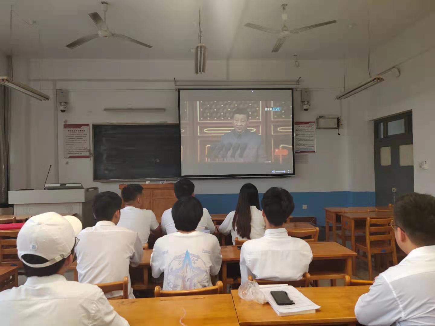 各党总支、各单位师生收看大会盛况现场