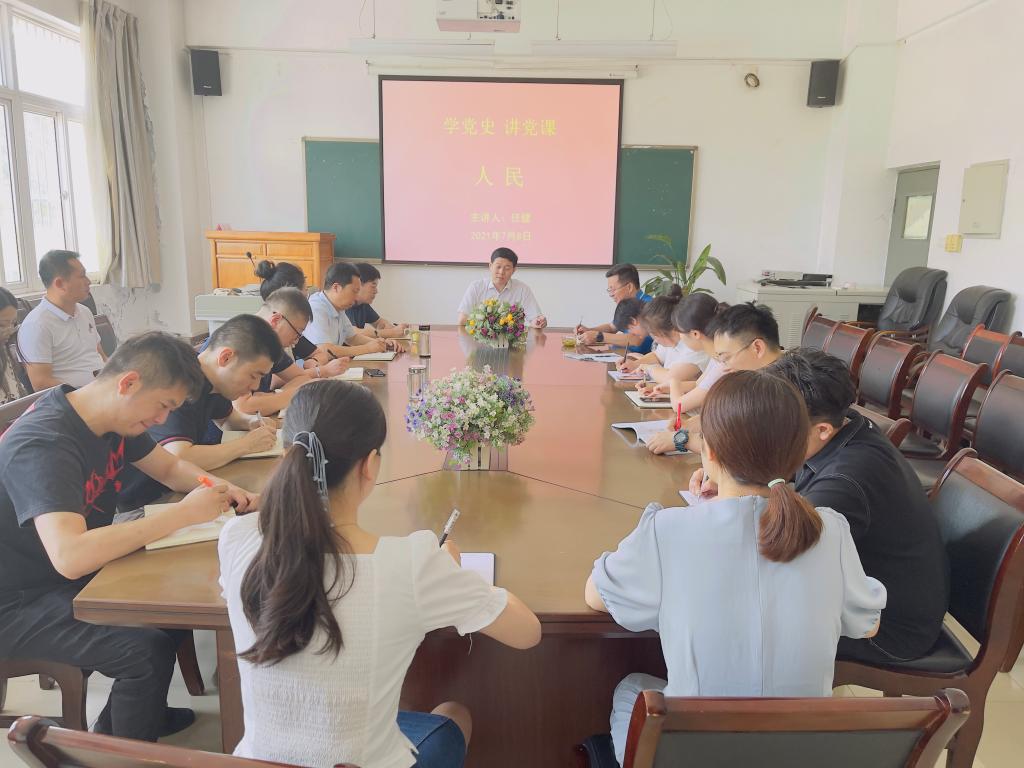 7月8日上午,党委副书记任健为伟德官网学团党支部党员和专职团干部讲授题为《人民》的党史学习教育专题党课。