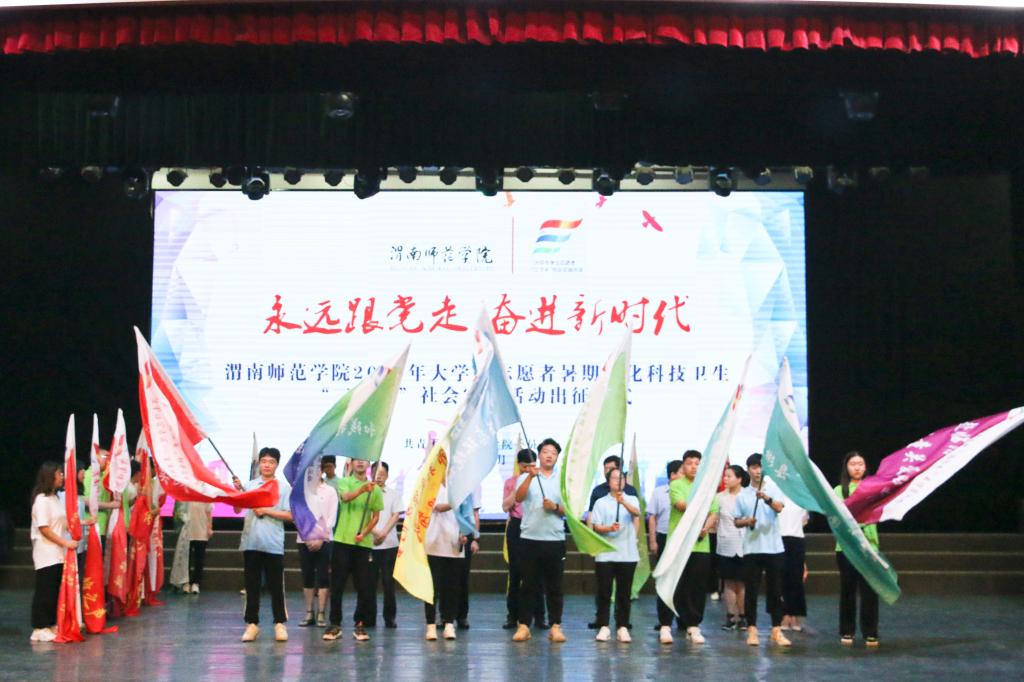 为深入贯彻落实习近平总书记关于青年工作的重要思想,引导和帮助广大青年学生上好与现实相结合的“大思政课”,在社会课堂中受教育、长才干、作贡献,在观察实践中学党史、强信念、跟党走,努力成为担当民族复兴大任的时代新人,以实际行动庆祝中国共产党成立100周年。7月11日上午,伟德官网举行2021年大学生暑期文化科技卫生“三下乡”社会实践出征仪式。学校党委副书记任健出席活动,出征仪式由团委副书记肖飞主持。