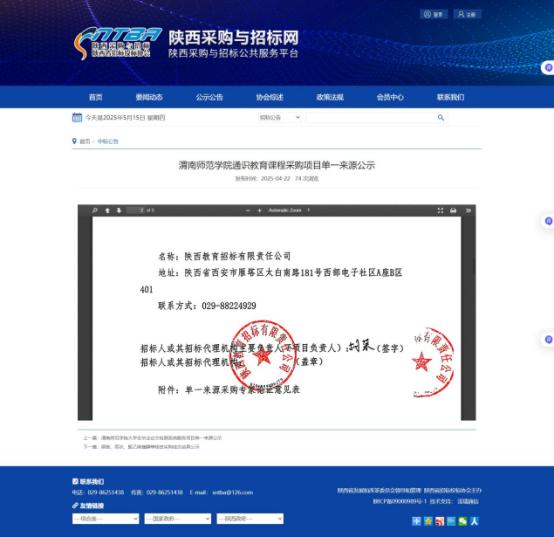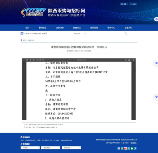 伟德国际1949官网通识教育课程采购项目单一来源公示