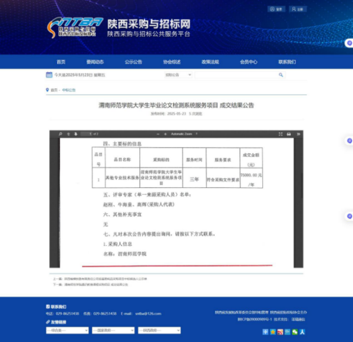 伟德国际1949官网大学生毕业论文检测系统服务项目成交结果公告