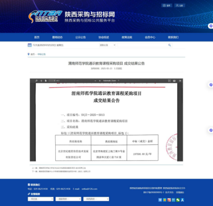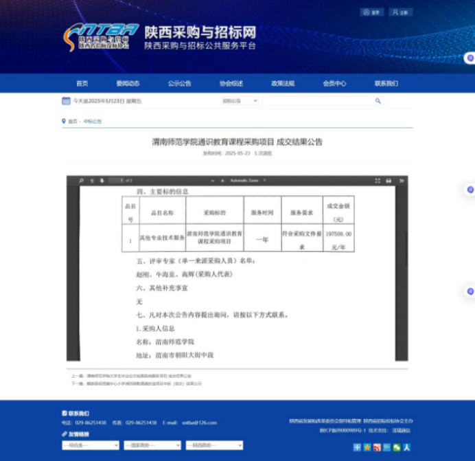 伟德国际1949官网通识教育课程采购项目成交结果公告