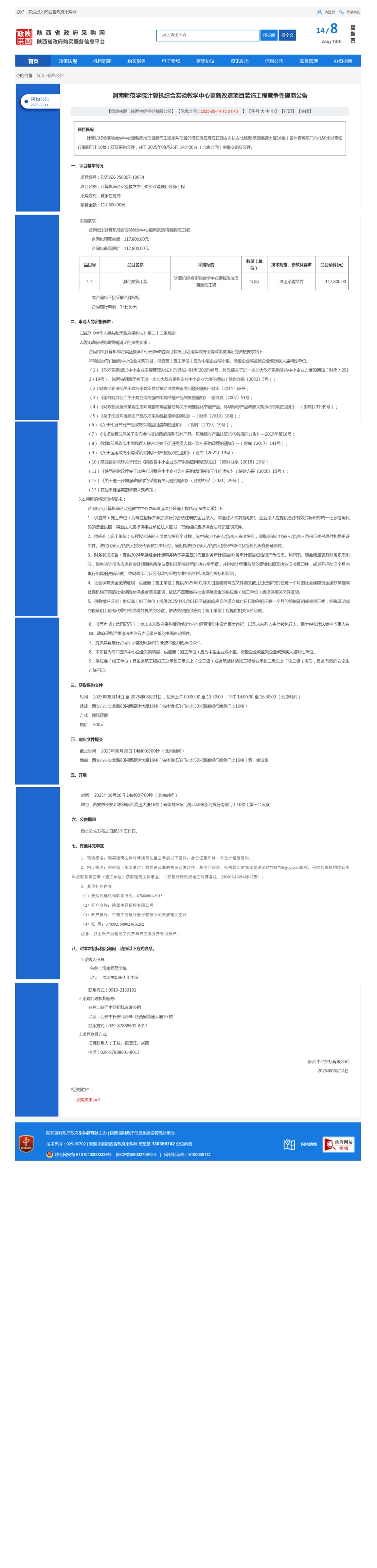 伟德国际1949官网计算机综合实验教学中心更新改造项目装饰工程竞争性磋商公告
