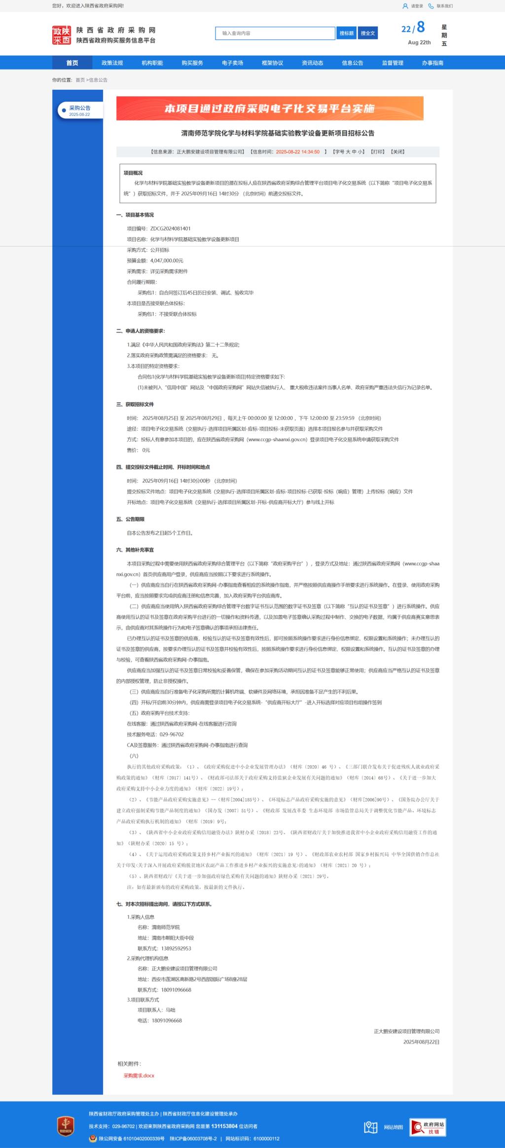 伟德国际1949官网化学与材料学院基础实验教学设备更新项目招标公告