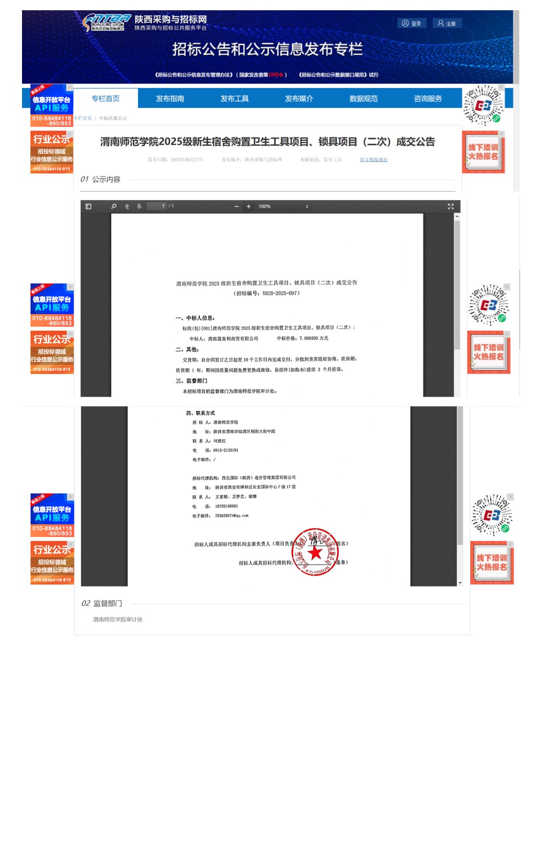 伟德国际1949官网2025级新生宿舍购置卫生工具项目、锁具项目(二次)成交公告