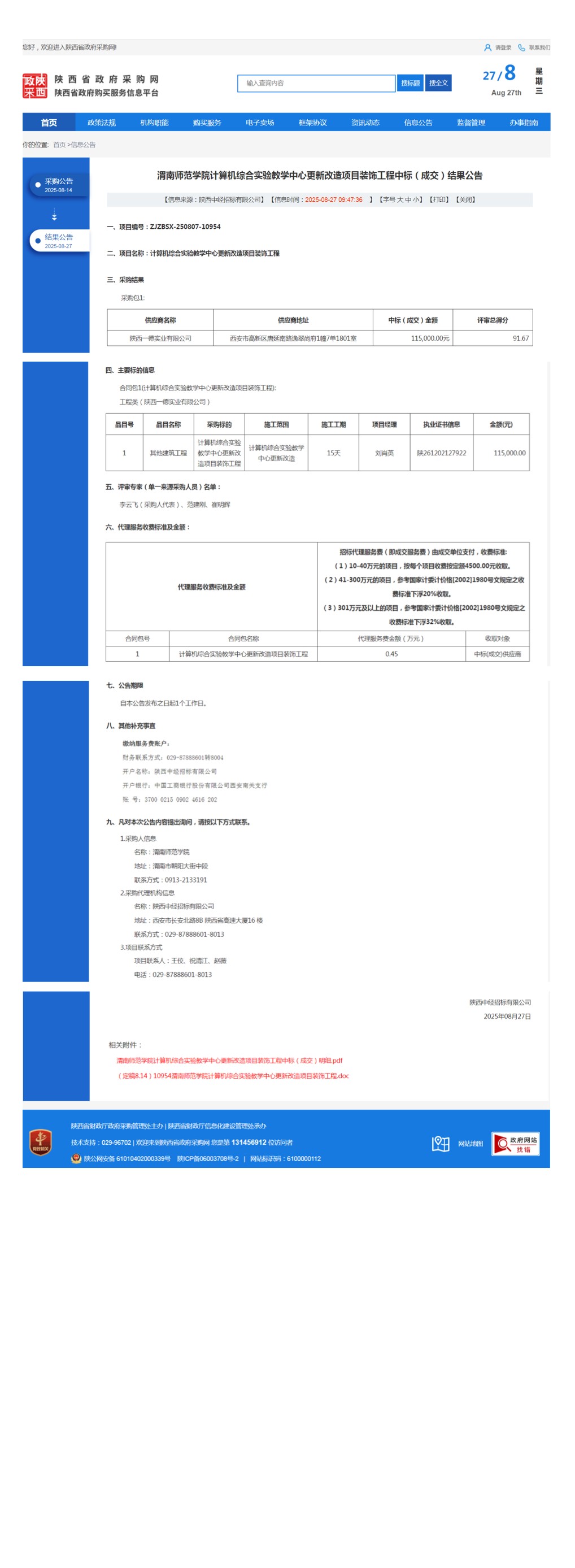 伟德国际1949官网计算机综合实验教学中心更新改造项目装饰工程中标(成交)结果公告