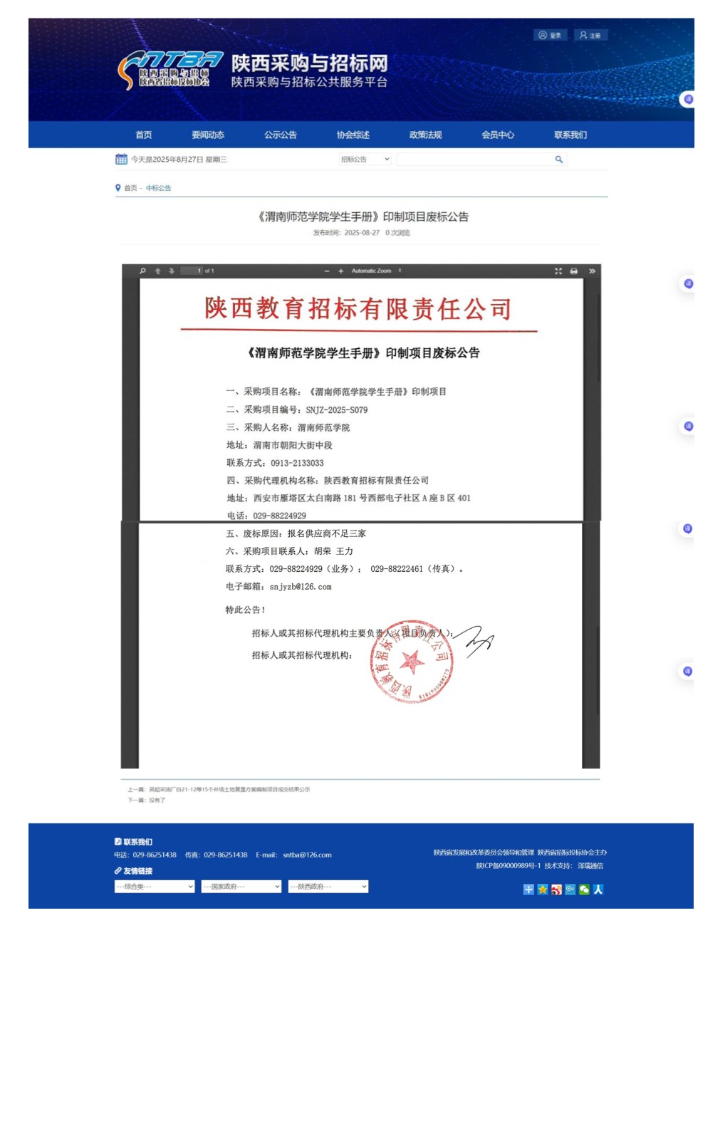 《伟德国际1949官网学生手册》印制项目(二次) 谈判公告