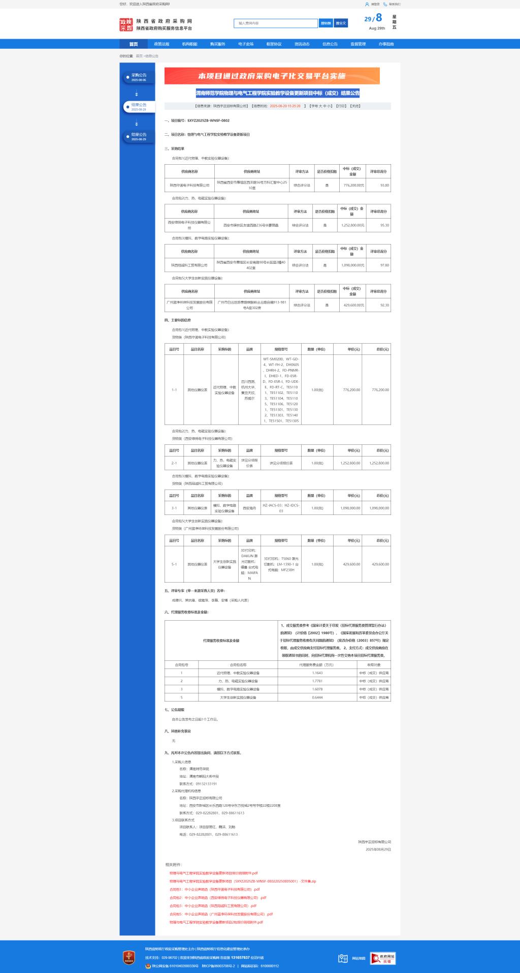 伟德国际1949官网物理与电气工程学院实验教学设备更新项目中标(成交)结果公告