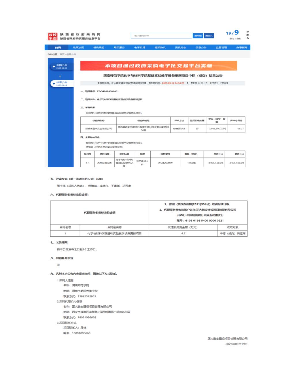 伟德国际1949官网化学与材料学院基础实验教学设备更新项目中标(成交)结果公告