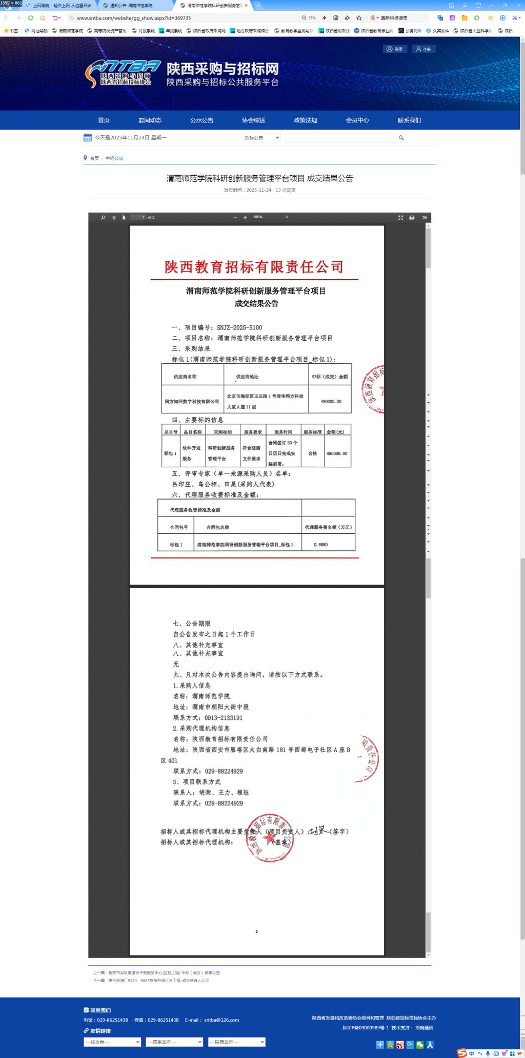 伟德国际1949官网科研创新服务管理平台项目成交结果公告