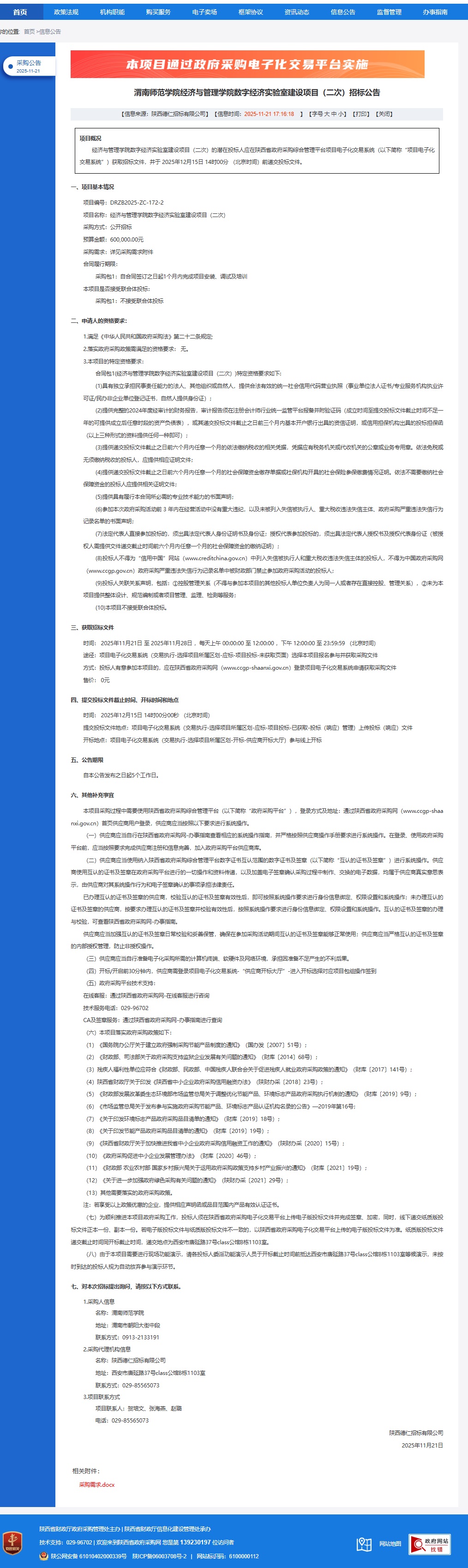 伟德国际1949官网经济与管理学院数字经济实验室建设项目(二次)招标公告