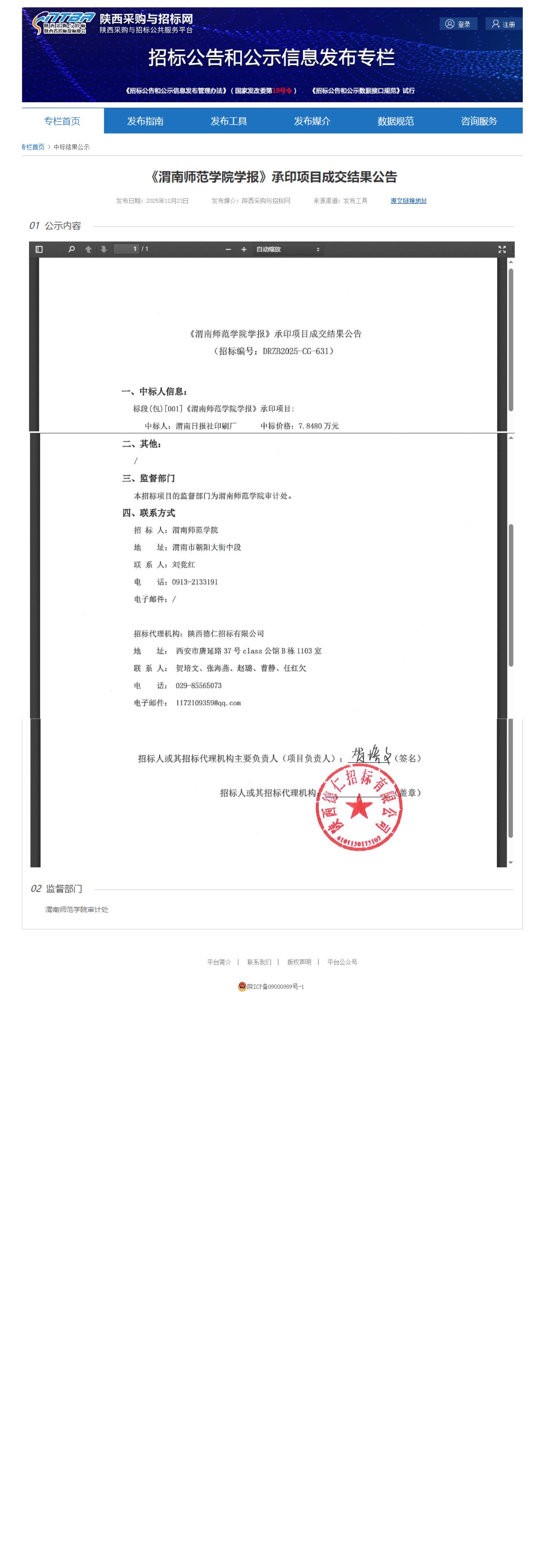《伟德国际1949官网学报》承印项目成交结果公告