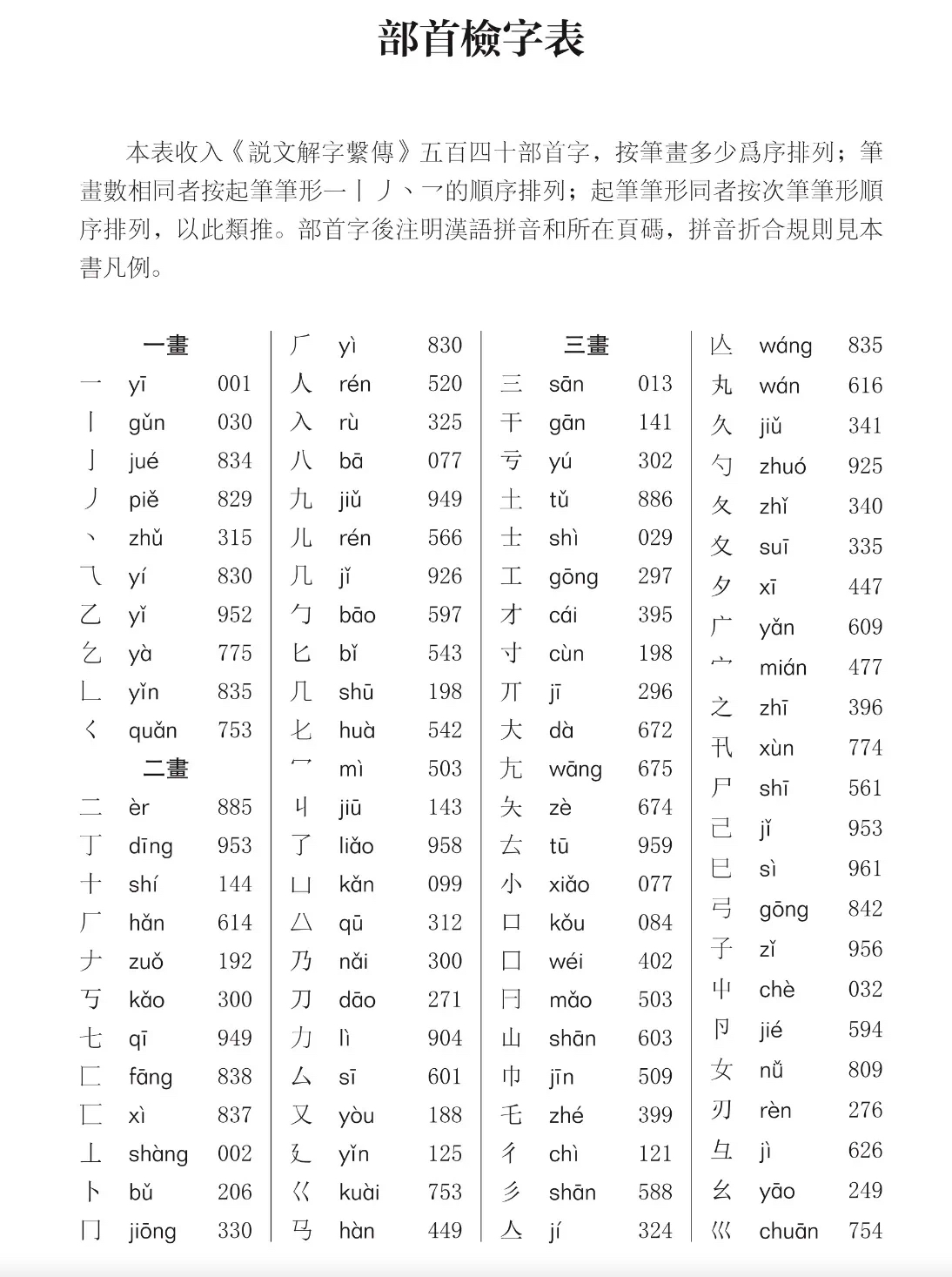 《系传》在装帧上较“大徐本”有很大改进,1200多页的书精装一册就是为了读者查检方便;再看内文,部首字加了灰底,点校者校记用脚注呈现,篆文前加楷书字头和注音,不同内容采用不同的字体等等,这些都是责编老师精心策划的。另外,书末附有《部首字检字表》《音序检字表》《笔画检字表》三套索引,也为方便读者使用考虑的。