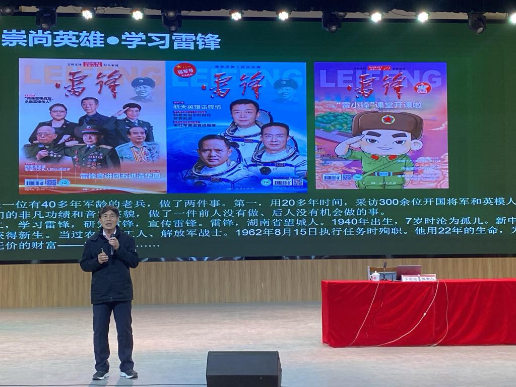 报告会环环相扣,以英雄精神夯实爱国主义教育基础,通过深入解读让雷锋精神从历史走进现实,让精神符号成为可触摸、可践行的成长指引,在师生中掀起“致敬英雄、学习雷锋、报效祖国”热潮。