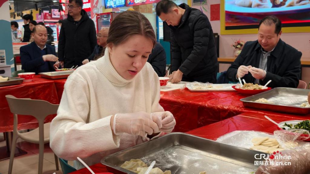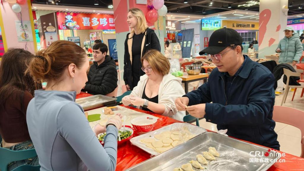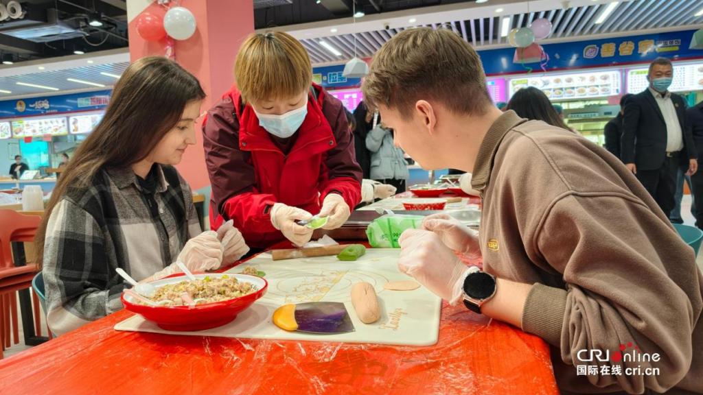 案板前,来自俄罗斯、塔吉克斯坦等国家的留学生围成一圈,学着擀皮、包馅。有人动作生疏,小心翼翼地捏着饺子边;有人已经渐渐熟练,一个个饺子摆得有模有样。空气里弥漫着面香,也多了几分节日的温度。