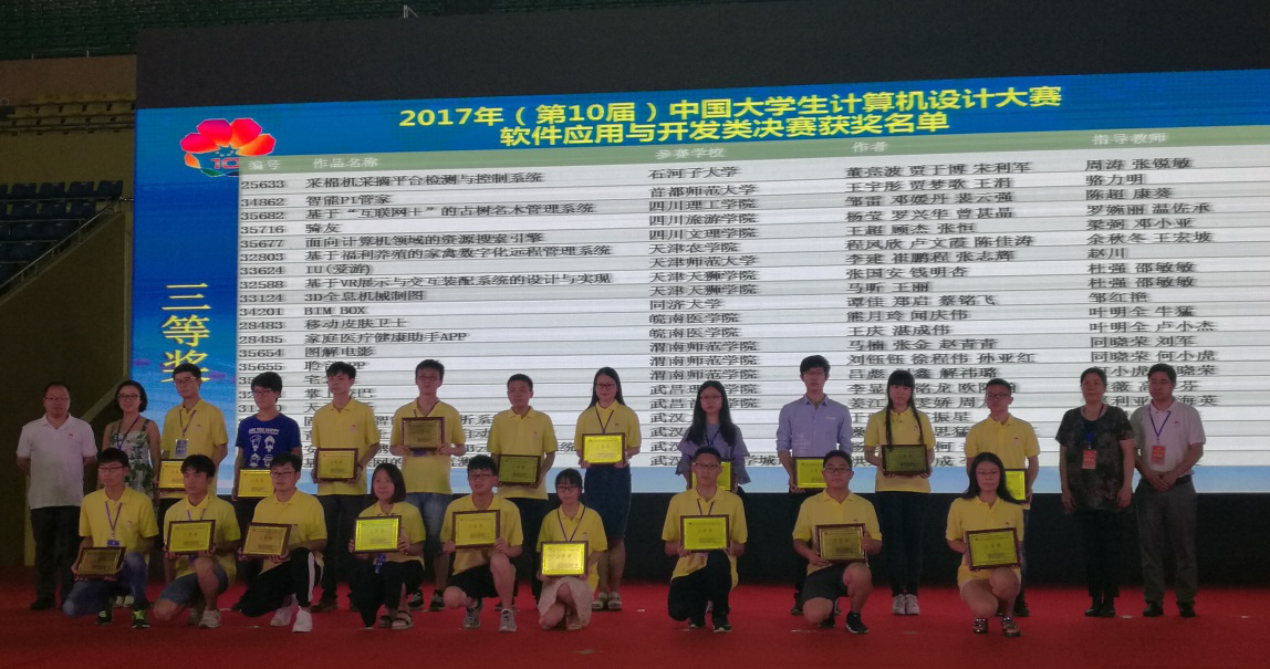 日前,2017年第十届“中国大学生计算机设计大赛总决赛”成绩揭晓。经过多轮激烈角逐,伟德官网网络安全与信息化学院参赛作品在软件开发与应用和微课与教学辅助类比赛中获得5项三等奖的优异成绩。学生在赛事中展示了过硬的技能水平和出色的专业素养,作品得到了评委老师的一致肯定和好评。