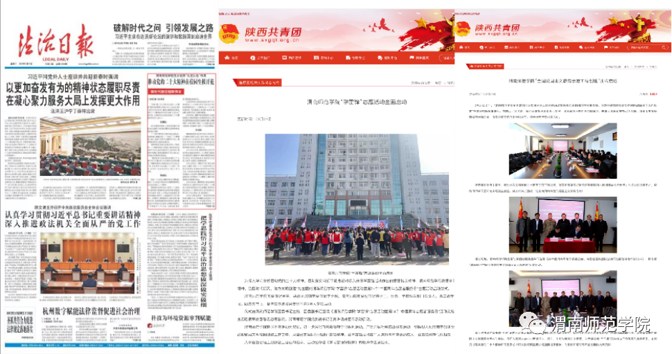构建学校志愿服务三级体系,成立志愿者突击队,下设“暖风”支教、“白鹭”环保、“筑梦”实践、“阳光”助残志愿组织,学校在全省高校志愿服务时长排名进入到第一方阵。组织大学生志愿者深入渭南市临渭区6个街道的108个社区网格小区,参与全国文明城市创建入户宣传和“文艺轻骑兵进社区”活动,实现了中心城市社区全覆盖。积极配合学校“绿色校园”“文明校园”创建,形成了渭师特色的“志愿服务”。启动爱国主义教育示范工程创建,分别与渭南市10个革命纪念地共建大学生爱国主义教育基地,接受红色教育洗礼,协作开展红色精神和红色文化研究,形成了渭师特色的“爱国教育”。