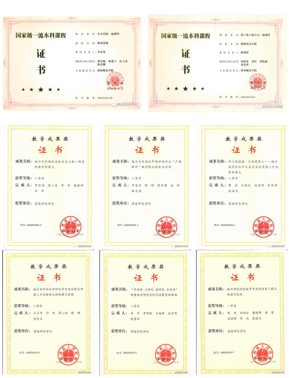 学校获批17个国家级、省级一流专业建设点,2个专业通过师范类专业认证,14门课程获批国家级、省级一流本科课程。获批国家级“新农科”项目1项、教育部产学合作协同育人项目129项、省级“四新”项目4项、陕西省教育教学改革项目14项,获得省级教学成果奖9项。获批省级线上特色课程2门、课程思政示范课程5门、创新创业教育课程5门。获批大学生创新创业训练项目国家级155项、省级365项。学生学科竞赛获国家级奖项271项、省级奖项619项。学生考研录取数量逐年提升,专业志愿率、报到率和毕业生去向落实率稳中有升。先后获批陕西省现代产业学院“绿碳化工现代产业学院”、大中小学劳动教育实践基地“双创+”劳动教育实践基地、课程思政教学研究示范中心等。深化劳动教育改革工作案例入选陕西省深化新时代教育评价改革典型案例,获陕西省高校美育改革创新优秀案例二等奖1项、三等奖6项。