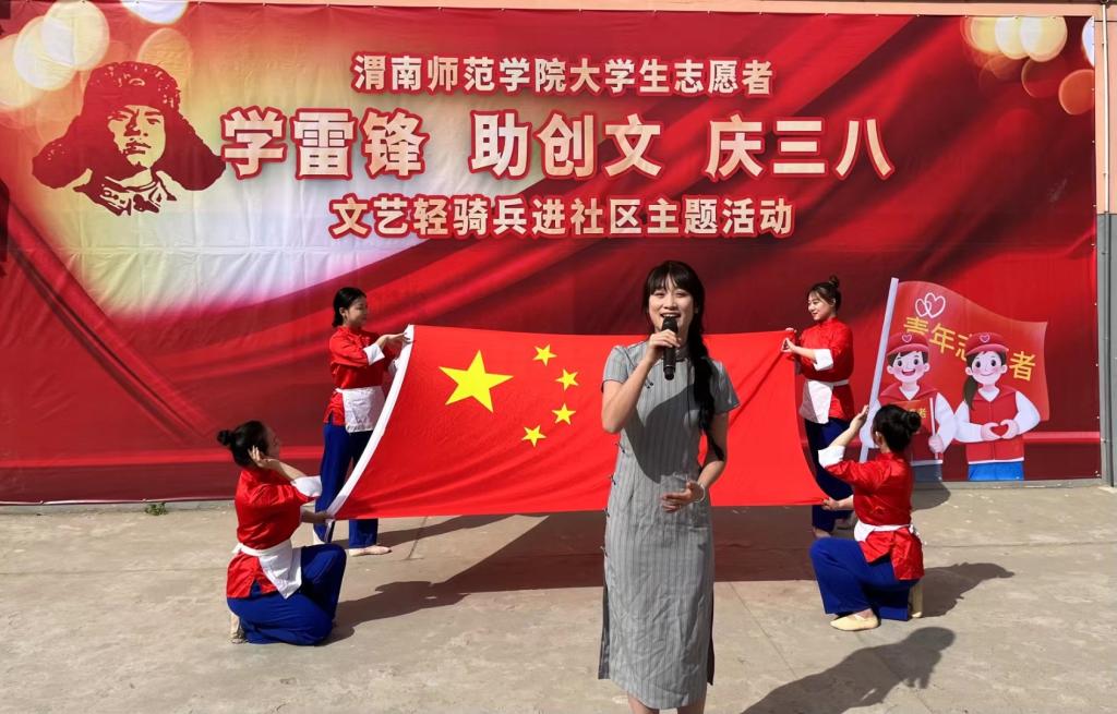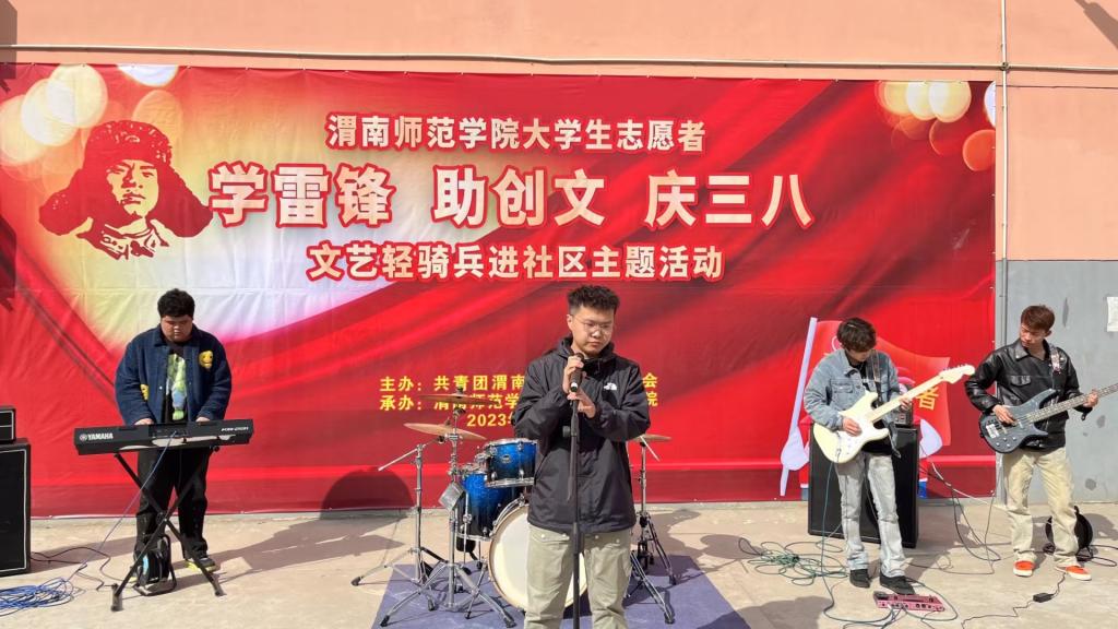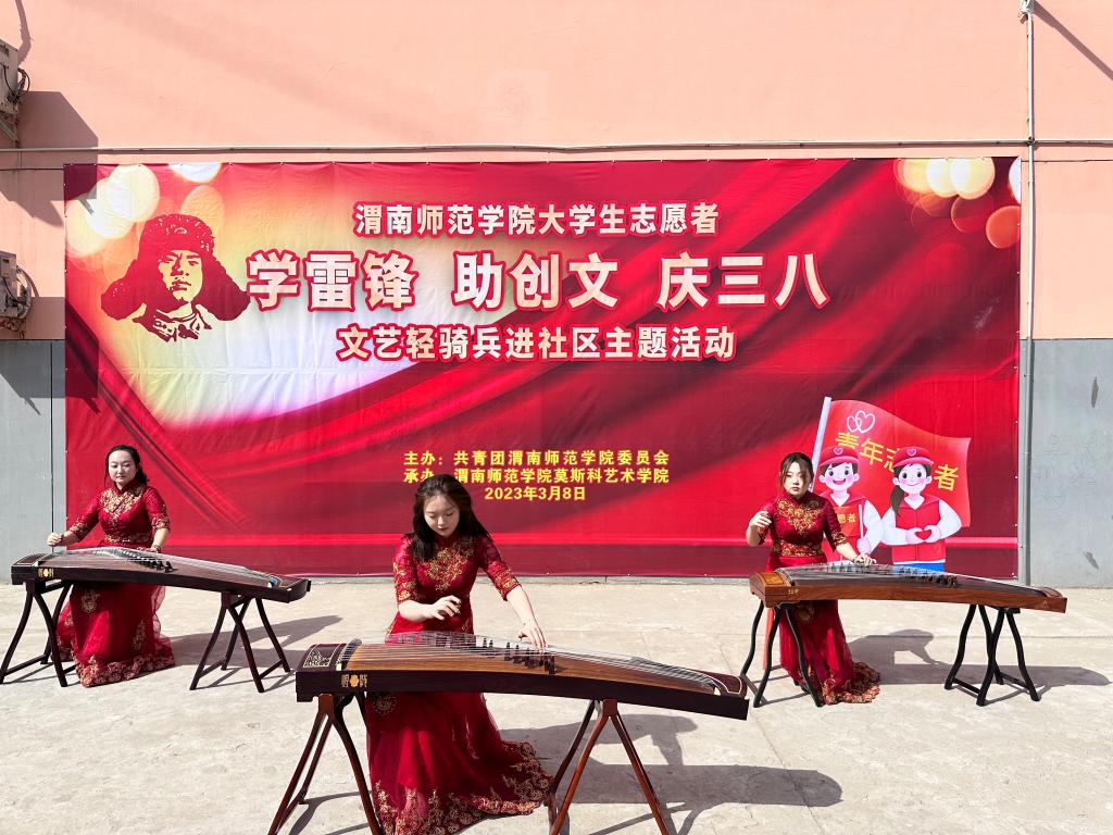 为深入学习宣传贯彻党的二十大精神,贯彻落实习近平总书记对深入开展学雷锋活动作出的重要指示精神,进一步深化学雷锋系列活动,广泛开展社会志愿服务活动,积极投入到渭南市创建全国文明城市工作之中,充分发挥青年大学生在学雷锋活动中的生力军作用。3月8日,伟德官网在渭南市临渭区解放街道渭通社区百合苑小区举行“伟德国际1949官网大学生志愿者‘学雷锋、助创文、庆三八’文艺轻骑兵进社区主题活动”。学校党委副书记汪勇、市委宣传部四级调研员兼创建办主任惠忠英、学校团委、莫斯科艺术学院相关负责同志参加活动。