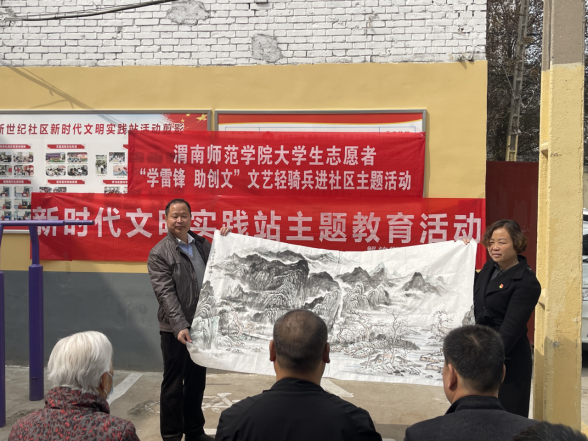 3月19日,学校党委副书记汪勇在校团委书记赵琦,副书记刘娟宁、潘涛的陪同下,深入社区“文艺轻骑兵”演出一线,现场指导并看望大学生志愿者,为社区居民赠送了由伟德官网美术学院师生创作的书画作品,演出现场不断传来热烈掌声和欢呼声。