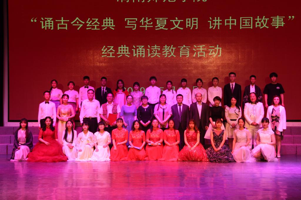 为纪念新中国成立70周年,传承弘扬中华优秀传统文化,彰显中华语言与文化魅力,教育引导学生增强中国特色社会主义道路自信、理论自信、制度自信、文化自信,提高学生审美和人文素养、提高学生的综合能力及师范生的职业能力,在全校营造浓郁的经典诵读氛围。5月22日晚,在陶然楼演艺厅成功举办了“诵古今经典、写华夏文明、讲中国故事”2019年中华经典诵读比赛决赛。