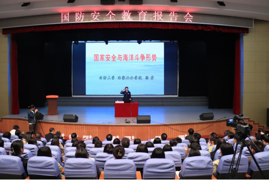 梁芳以敏锐的视角、独特的见解、生动的语言、真实的情感,紧密结合当前国际国内形势,从海洋在国家安全中的地位作用、我国海上安全面临的威胁与挑战、维护我国海洋权益的几点思考等方面,系统梳理了我国周边安全环境的形势与特点,全面分析了当前影响海上安全的国际热点,深刻阐述了维护我国海洋权益的战略意义。她从促进我国海洋安全、国家安全的视角出发,希望加强国防教育,加大固有领土主权的宣传力度,希望广大青年学生关心海洋、认识海洋、经略海洋,关心国防、热爱国防、献身国防。梁教授的报告立意高远、内涵丰富,逻辑严密、说理透彻,赢得了在场师生的阵阵掌声。