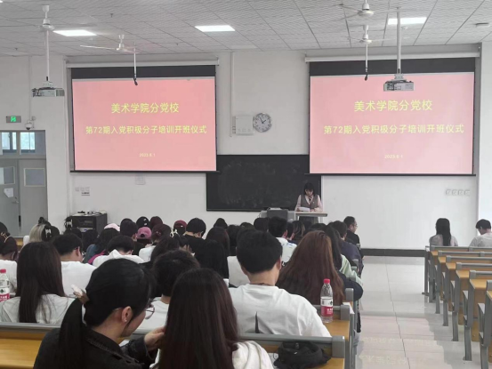 6月1日下午,美术学院党总支在富平校区主教学楼237教室举行了分党校第72期入党积极分子培训班开班仪式,学院党总支书记陈进卫、党总支副书记雷毅、党务秘书张华、美术系学生党支部书记魏文静、设计系学生第二党支部书记蔡朱红、全体辅导员及75名入党积极分子参加开班仪式,仪式由党务秘书张华主持。