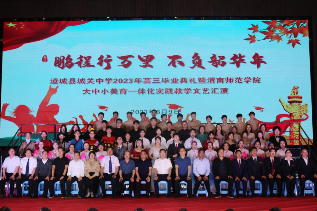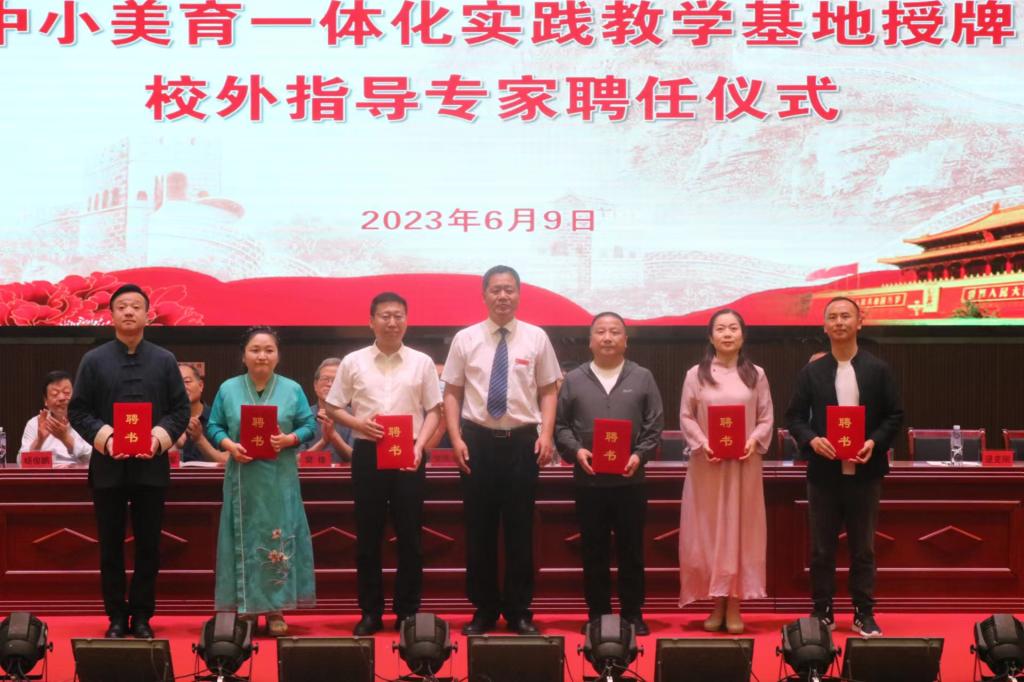 6月9日,由音乐学院与澄城县城关中学大中小美育一体化实践教学基地授牌暨校外指导专家聘任仪式顺利开展,音乐学院与澄城县城关中学共同携手成立大中小美育一体化建设艺术实践基地。音乐学院院长刘鹏与城关中学校长鲁九云共同为基地揭牌,城关中学为学院教师颁发校外指导专家聘书。