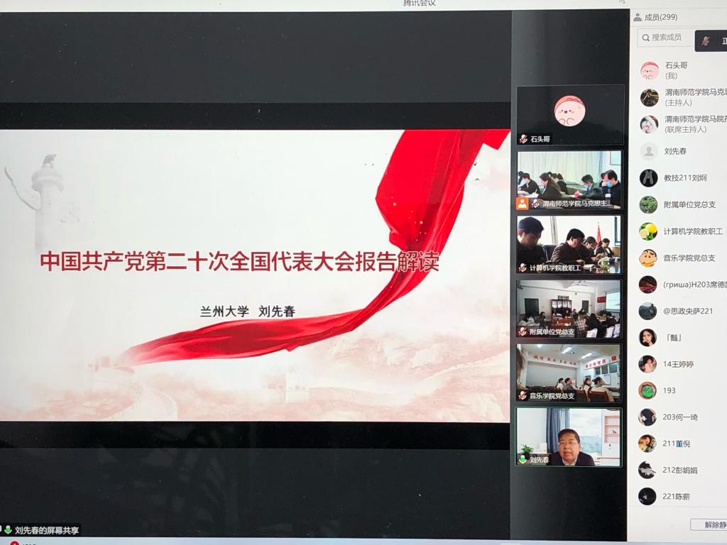 党的二十大,高举旗帜、凝聚力量、团结奋进,具有重大的政治意义、历史意义、时代意义。为进一步加深伟德官网党员干部和广大师生对党的二十大精神的认识和理解,加大对党的二十大报告的广泛宣传和全面解读,在线上分享相关的专家辅导课件基础上,10月26日下午,伟德官网特别邀请兰州大学马克思主义学院刘先春教授作专题辅导报告。