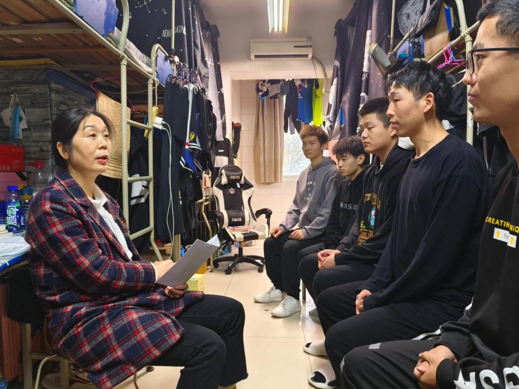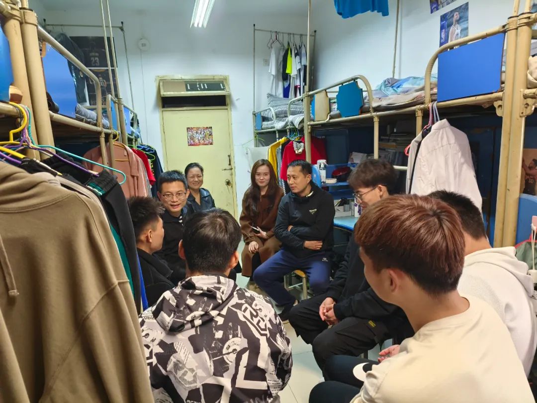 10月28日下午,体育学院党总支书记李春兰,党总支副书记闵雄飞,学工办主任朱颖妮,团总支部书记王斌和2022级辅导员李欣泽深入到包联的七号公寓楼宣讲党的二十大精神,开展党建进公寓活动。