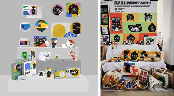 美术学院师生立足专业特色,助力研究成果转化。在视觉传达设计展区,师生采用插画设计、交互设计、招贴设计、海报、文创产品等多种方式进行研究,深入挖掘澄城县剪纸、刺绣、瓷器、手工面花等特色元素进行创作,成果既保有深厚的非遗传承文化内涵,又展示出设计创新的独特魅力。据统计,完成文创设计作品60组件,完成专场作品展2场