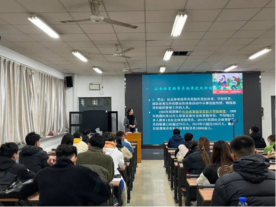 授课教师团队李春兰深入浅出地讲解了社会体育指导员的职责、分类、晋升条件,以及在业务指导时应遵循的原则和注意事项。