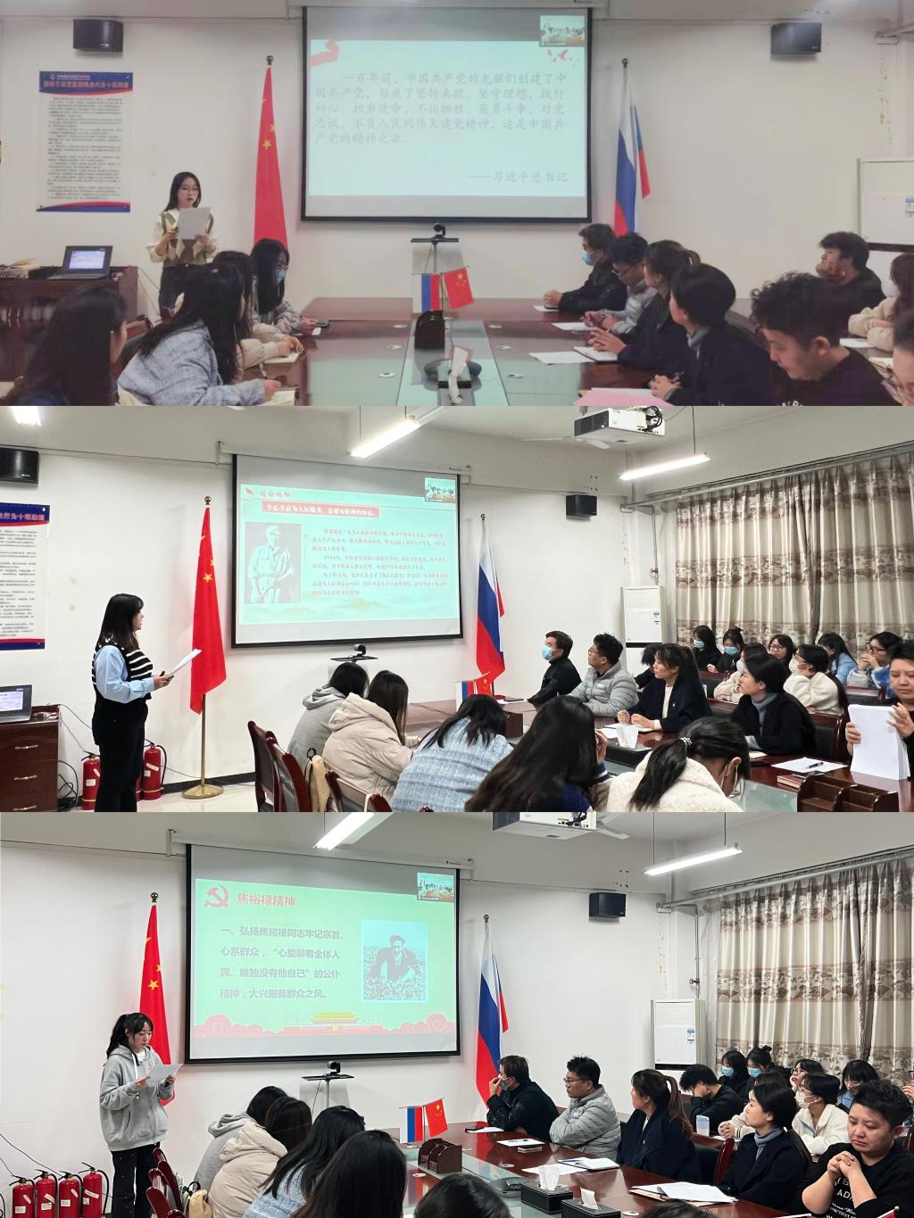莫斯科艺术学院“跟着总书记学党史·精神印记”学思沙龙活动是学院创新学生党员理论学习和教育方式的重要举措。学生党员以“人民网”中“跟着总书记学党史·精神印记”栏目为学习资源,在学习习近平总书记有关中国共产党人的精神谱系的重要讲话精神的同时,查找相关资料、收集资源、精心制作课件,将党的理论知识与鲜活的事例、生动的语言、真实的情感相结合,不断提升党史学习教育效果,引导广大学生在学习百年党史中感悟初心使命,凝聚前行力量。