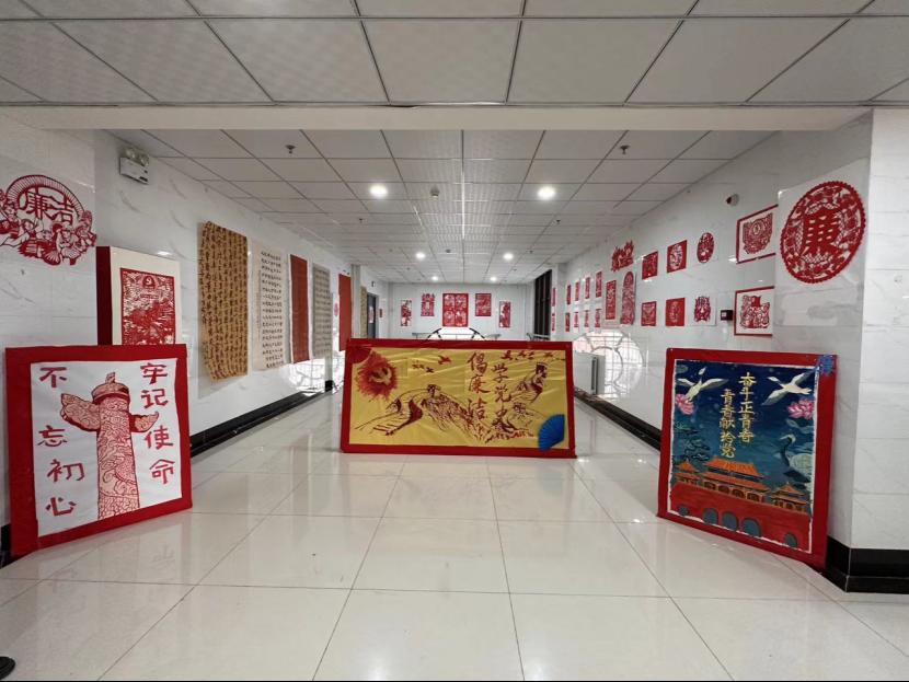 本次展览共收集作品90余幅,其中包含剪纸、绘画、书法等作品形式,同学们以书言志,以画寄情,以不同的艺术表现形式讴歌党的丰功伟绩、歌颂伟大祖国,立足新时代全面从严治党的伟大实践,作品内容将宣传学习党的二十大精神、党史学习、廉政教育与民间工艺剪纸和书画相结合,发挥专业特色,深化教育主题。