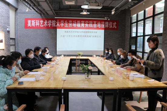 12月13日下午,莫斯科艺术学院大学生劳动教育实践基地签约挂牌仪式在孚道美术馆顺利举行。莫斯科艺术学院党总支书记孟波、学院部分处科级干部、专业负责人,孚道美术馆馆长李明强、副馆长李倩及相关工作人员参加仪式。